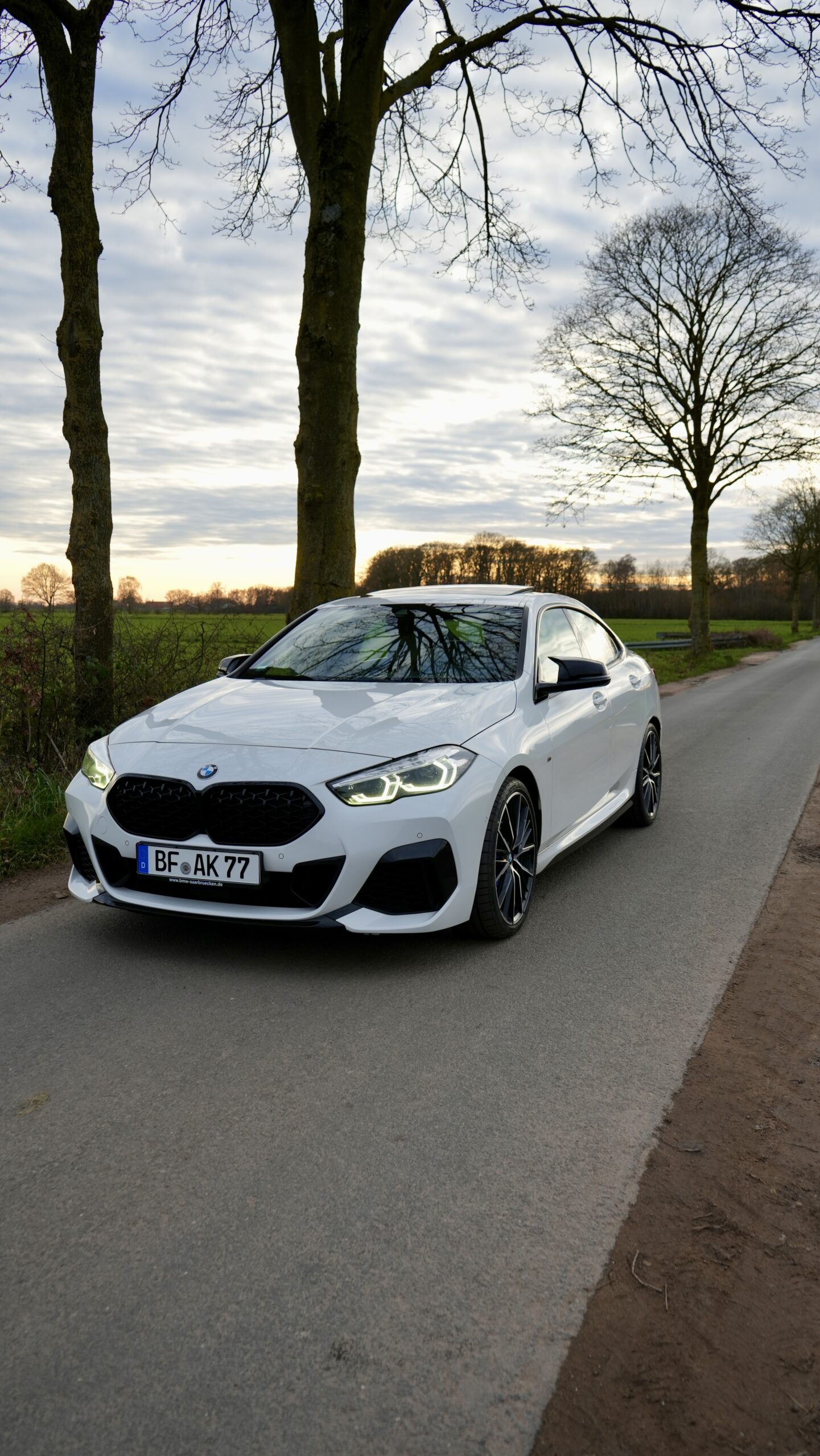 Der weiße BMW M235i eignet sich ideal für moderne Hochzeiten, Standesamt-Termine oder After-Wedding-Shootings. Sein markantes Design wirkt auf Fotos dynamisch und elegant zugleich – perfekt für ein zeitgemäßes Hochzeitskonzept.